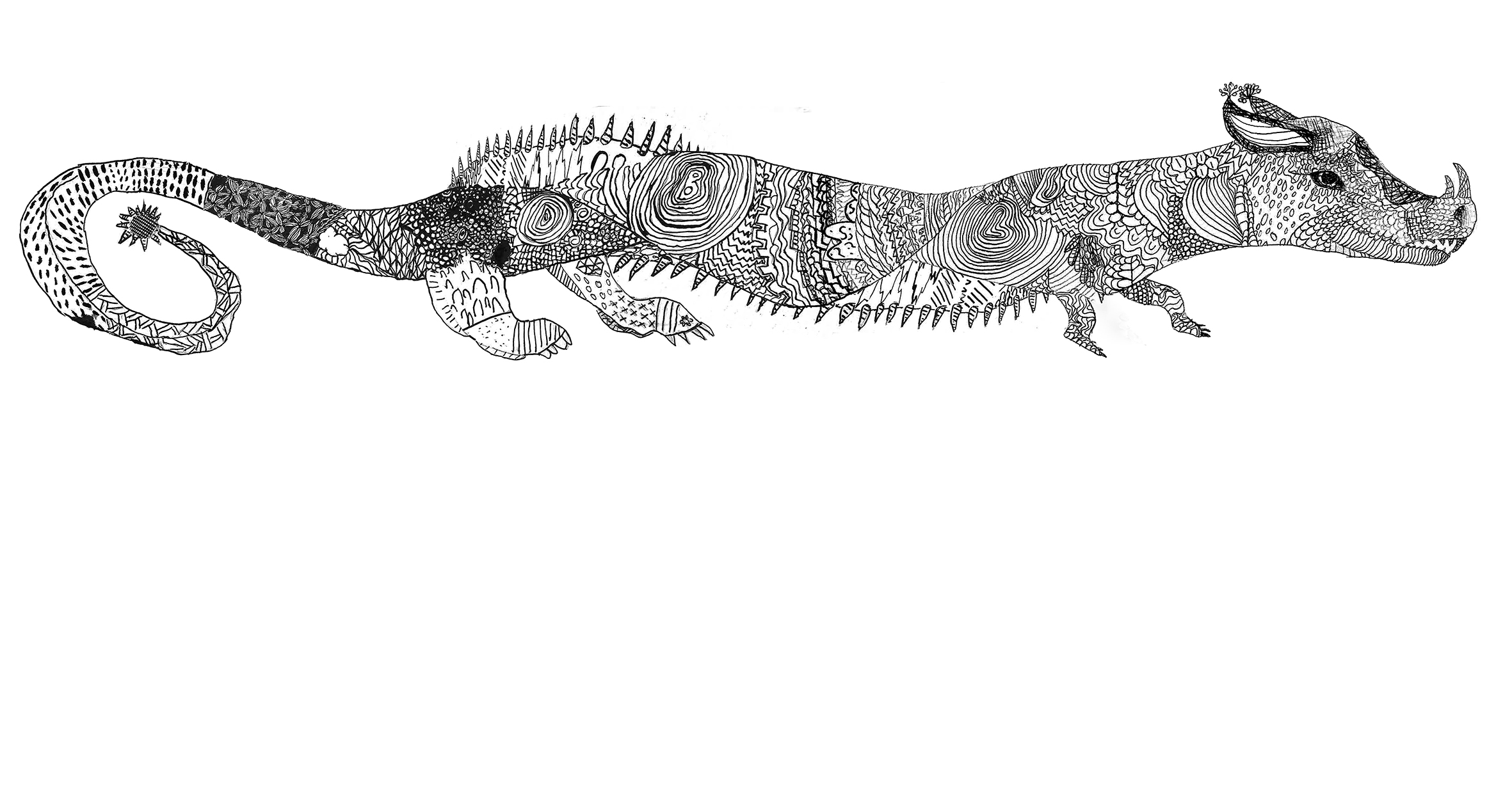 Zunächst hat jeder aus unserer Klasse eine kleine phantasievolle Echse mit Tusche und Feder gezeichnet. Aus diesen kleinen Echsen hat Herr Heinert, unser Kunstlehrer, ein paar besonders schöne ausgewählt und an seinem Computer eine Super-Echse gebastelt, die er dann riesengroß ausgedruckt hat. Diese große Echse sollten wir alle gemeinsam schön gestalten.