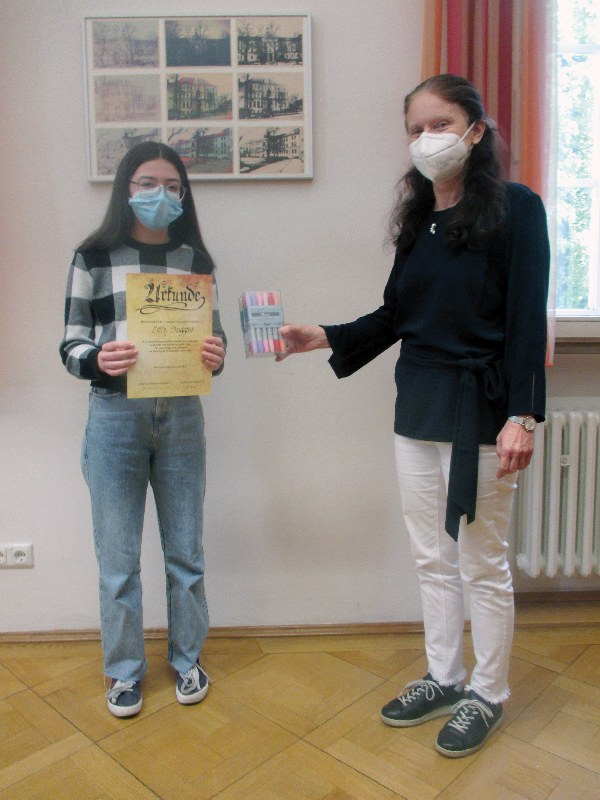 Mit dem Theresien-Kunstpreis sind nicht nur Ruhm und Ehre verbunden, sondern auch ein Gutschein für Künstlerutensilien im Wert von 100 €. Der großzügige Preis wurde dankenswerterweise vom Förderverein des ThG gespendet.