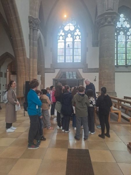 Kirchen sind Orte der Besinnung, des Gebets und des Gottesdienstes. Aber sie halten noch viel mehr bereit! Das durften die Fünftklässler des Katholischen Religionsunterrichts bei einer Kirchenführung in St. Paul erfahren: Pfarrer Christian Hermann erklärte den Schülern die Ausstattung des Kircheninnenraums und sensibilisierte sie für deren Symbolik. Besondere Highlights: die Videoinstallation „Von Ewigkeit zu Ewigkeit“ von Stefan Hunstein und die etwas andere Osterkerze von Guido Weggenmann, welche in kunstvoller Weise die enge Verbundenheit von Gott und Mensch, aber auch die Zusammengehörigkeit der Menschen untereinander versinnbildlicht. Bilder dazu finden Sie hier