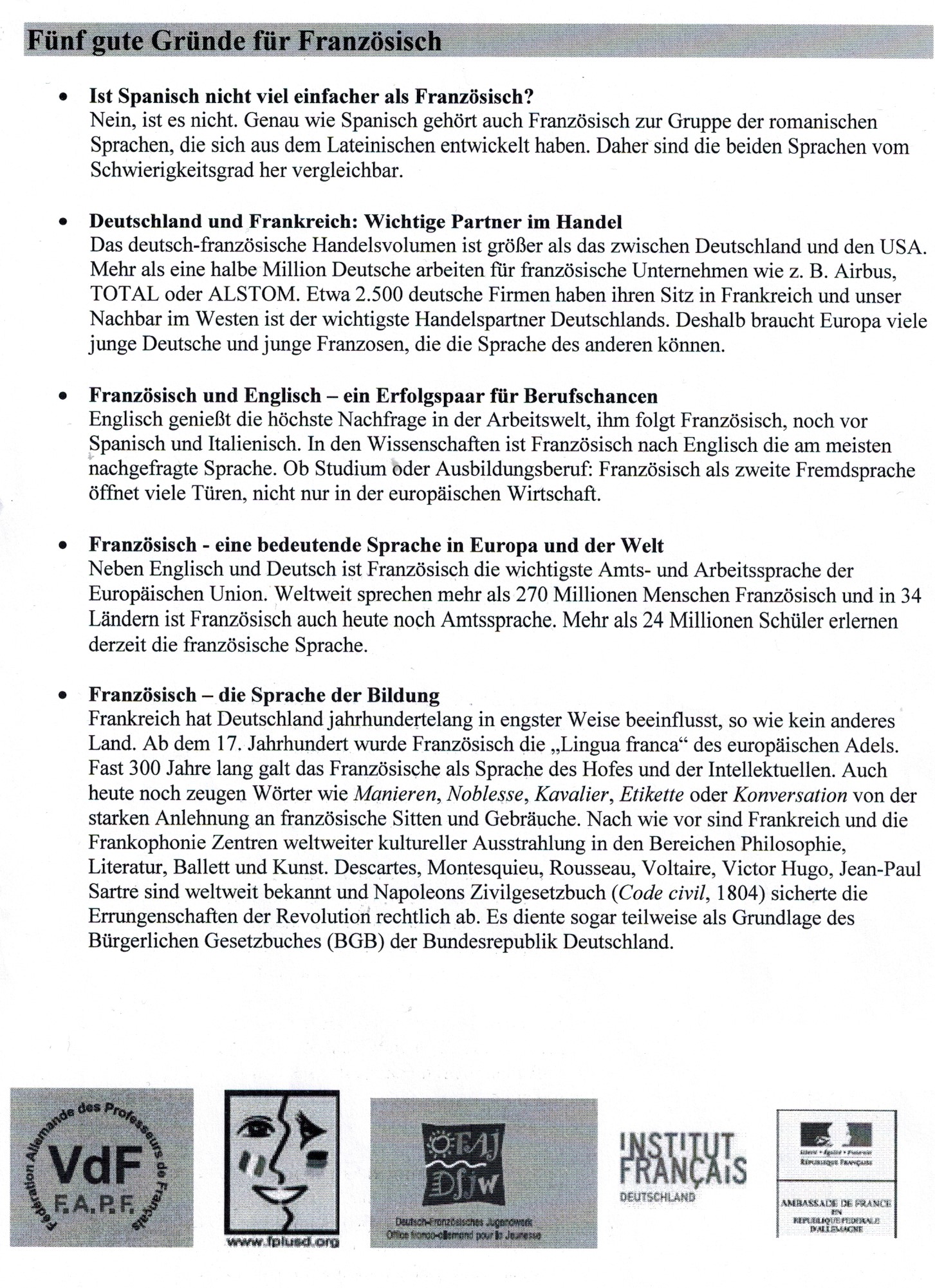 Fünf gute Gründe für Französisch
