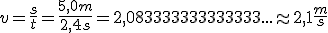 Gegeben: s = 5,0 m ; t = 2,4 s